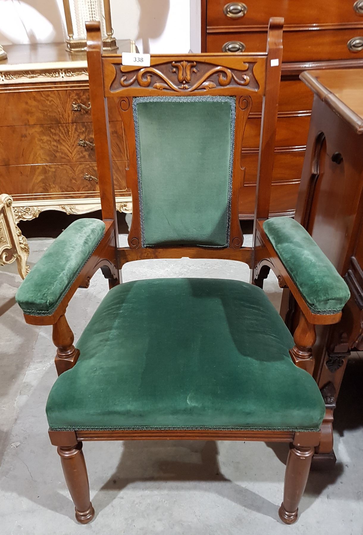 OPEN ARM PARLOUR CHAIR WITH CARVED FRAMED