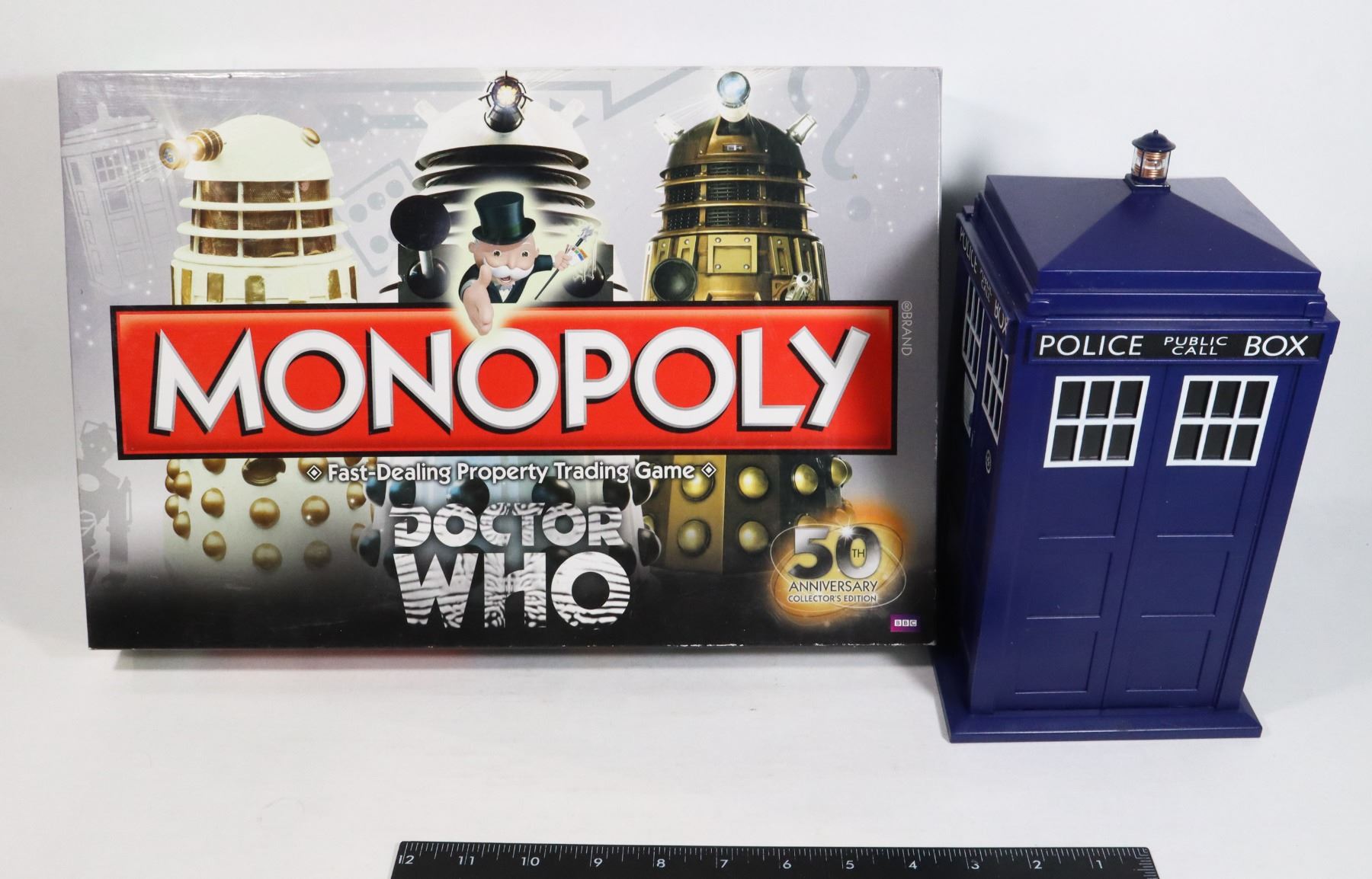 BOARD GAME. OPEN BOX. FOR SURE MISSING BOW TIE TOKEN. SOLD WITH DR. WHO POLICE BOX