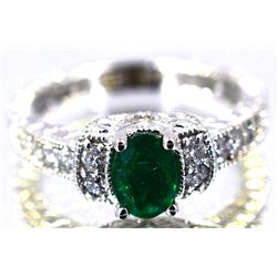 14kt White Gold 5.50 Approx grams including, .85ct Emerald Excellent Oval Deep Green, .42ctw Round Diamond G-H color VS-SI clarity, size 6.75