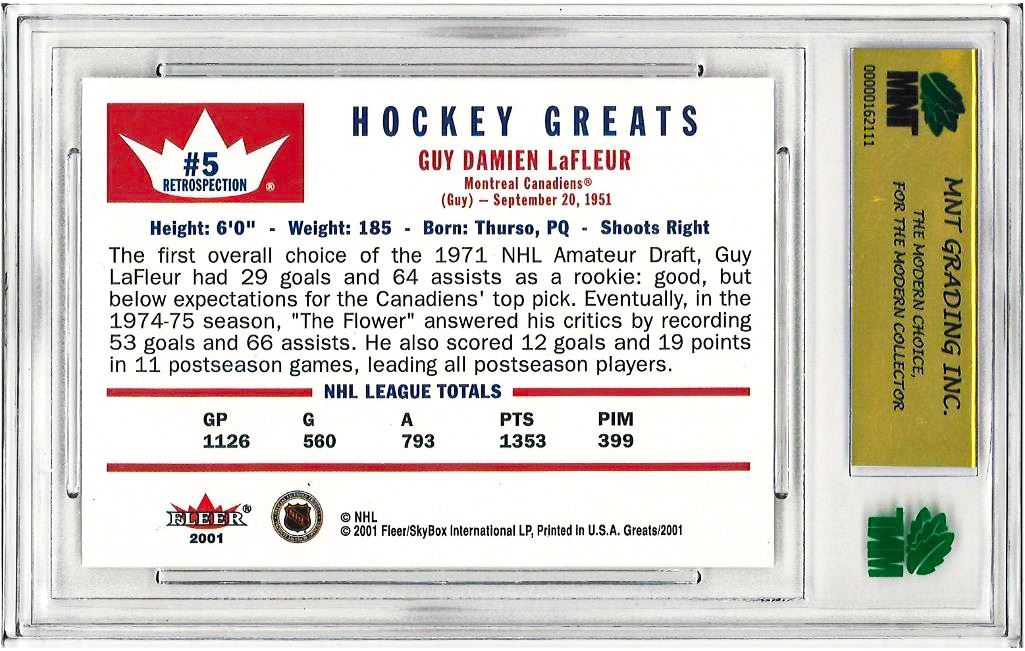 OR - 2001-02 Fleer Greats of the Game Retrospection Guy Lafleur #5 HOF Canadiens Graded 9 MNT