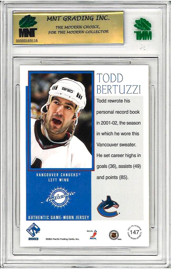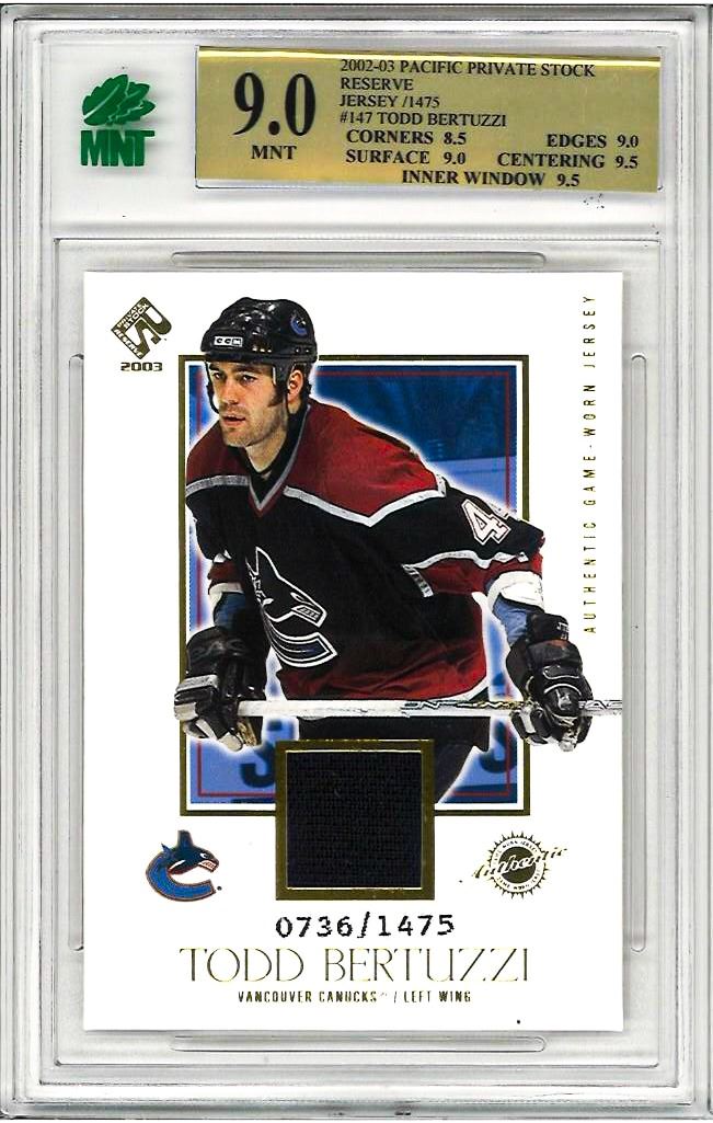 OR - 2002-03 Pacific Private Stock Reserve Todd Bertuzzi #147 GU Patch Relic /1475 Graded 9