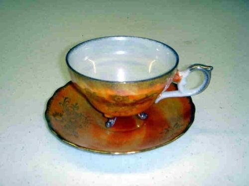 ORANGE & PEARL FOOTED CUP & SAUCER