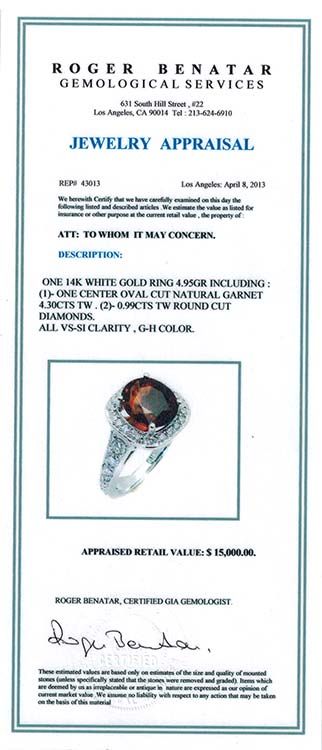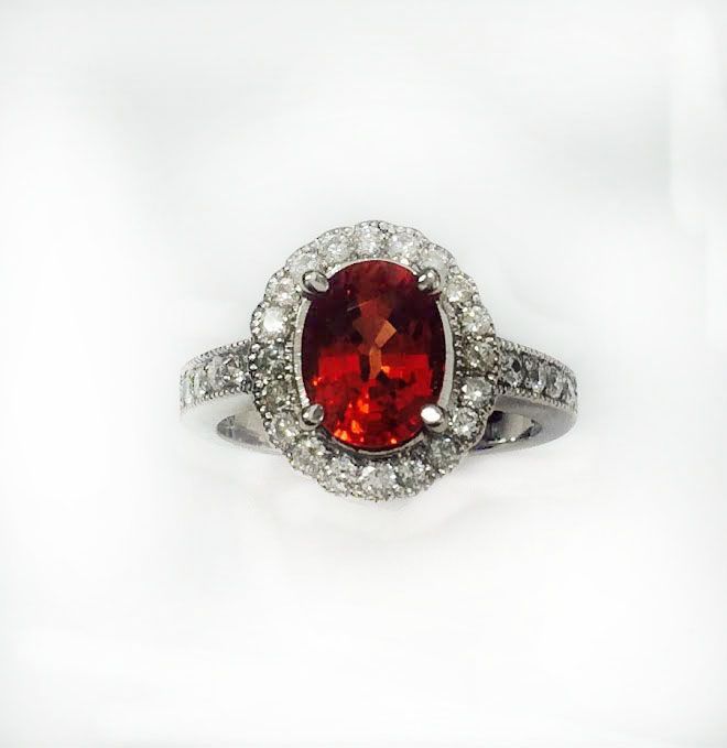 ORANGE SAPPHIRE 2.55CT, 14K W/G RING 4.84GRAM / DIAMOND 0.57CT