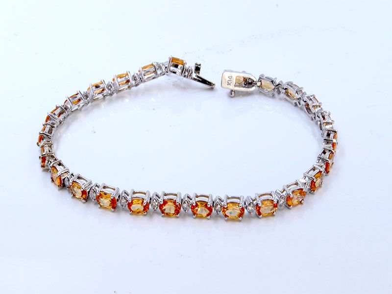 ORANGE SAPPHIRE 7.29CT, 14K W/G BRACELET 8.05GRAM / DIAMOND 0.48CT