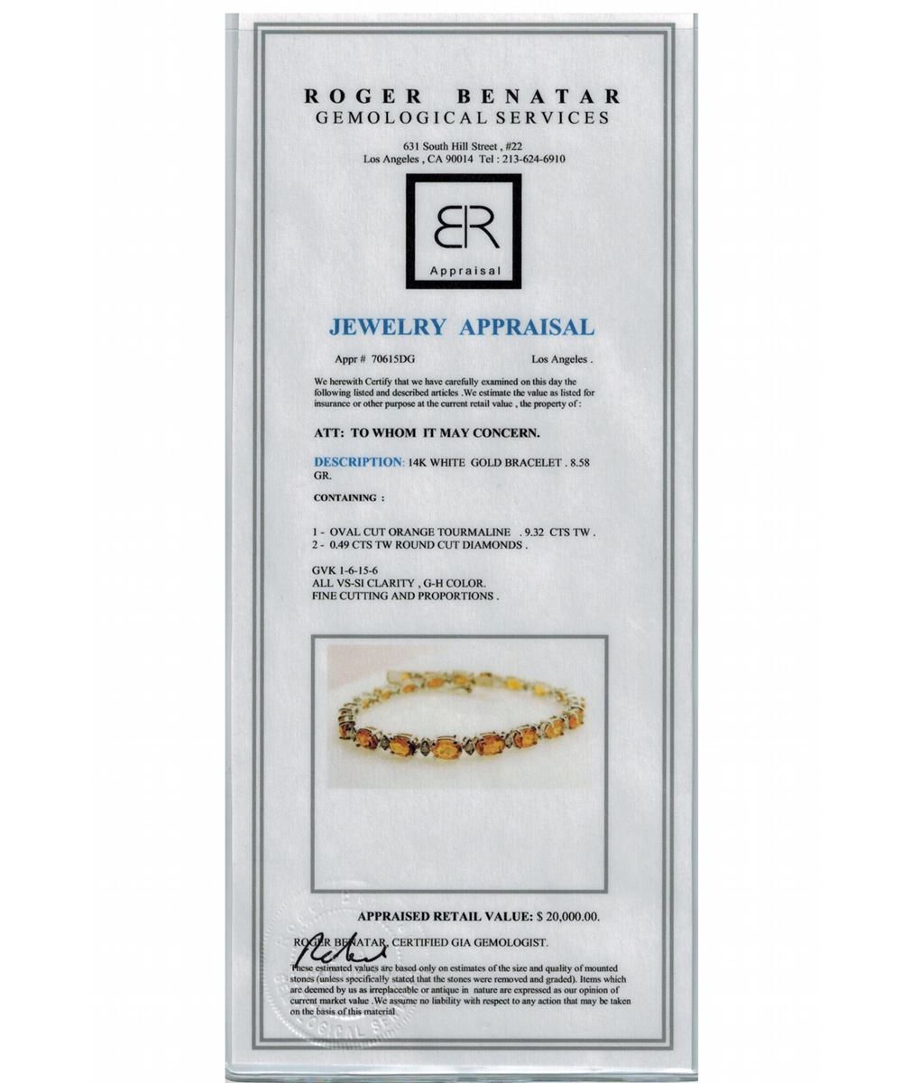 ORANGE TOURMALINE 9.32CT / DIAMOND 0.49CT / 14K WHITE GOLD BRACELET 8.85GRAM
