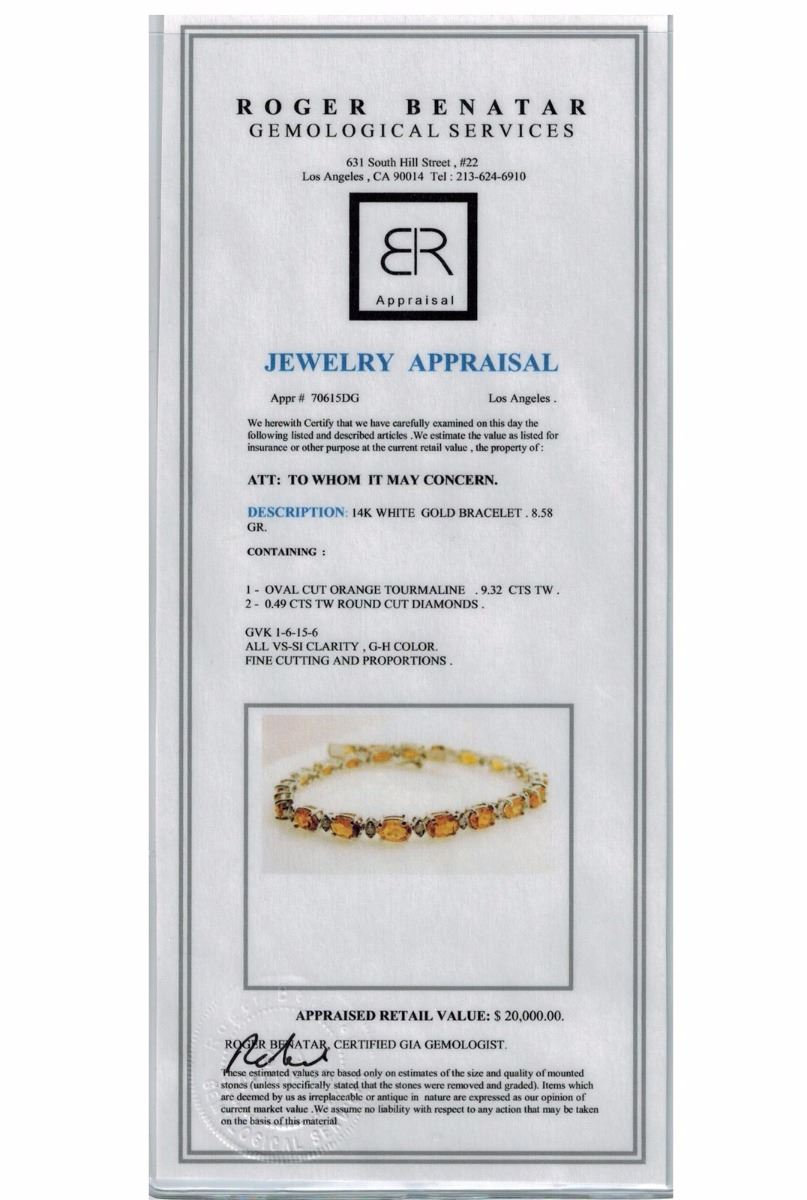 ORANGE TOURMALINE 9.32CT / DIAMOND 0.49CT / 14K WHITE GOLD BRACELET 8.85GRAM / GVK1/6/15(6)