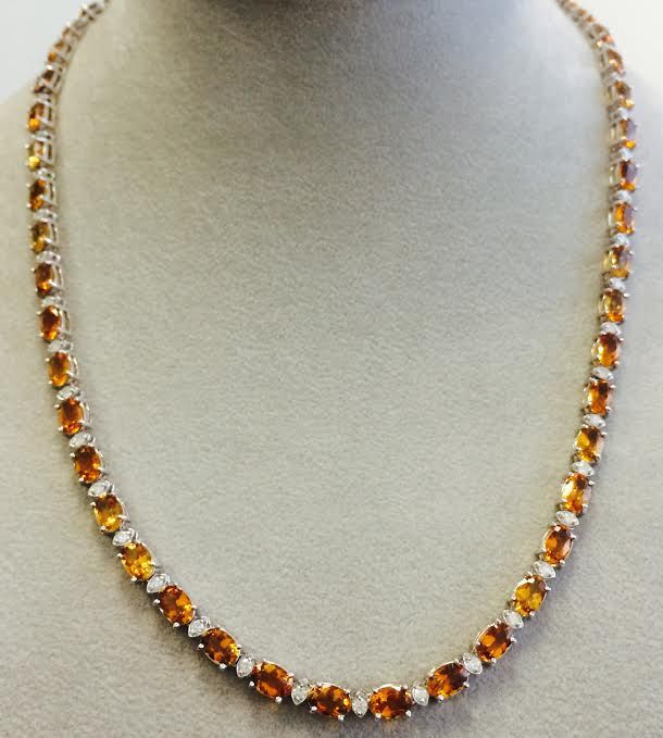 ORANGE TOURMALINE OVAL 24.19CT, 14K W/G NECKLACE 16.89GRAM / DIAMOND RD 1.61CT
