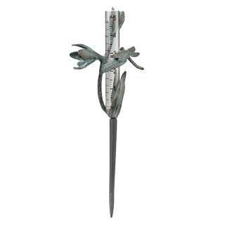 ORCHID & DRAGONFLY RAIN GAUGE - 12"H X 5"W X 1.5"D - BRASS, IRON & GLASS