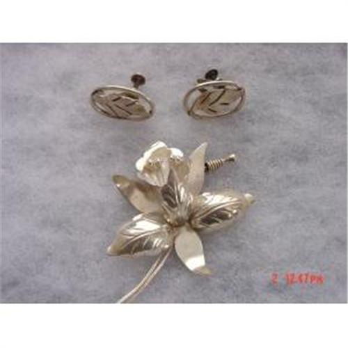 <tr><td>Title:ORCHID Mexican Sterling 3 piece brooch earrings</td></tr>