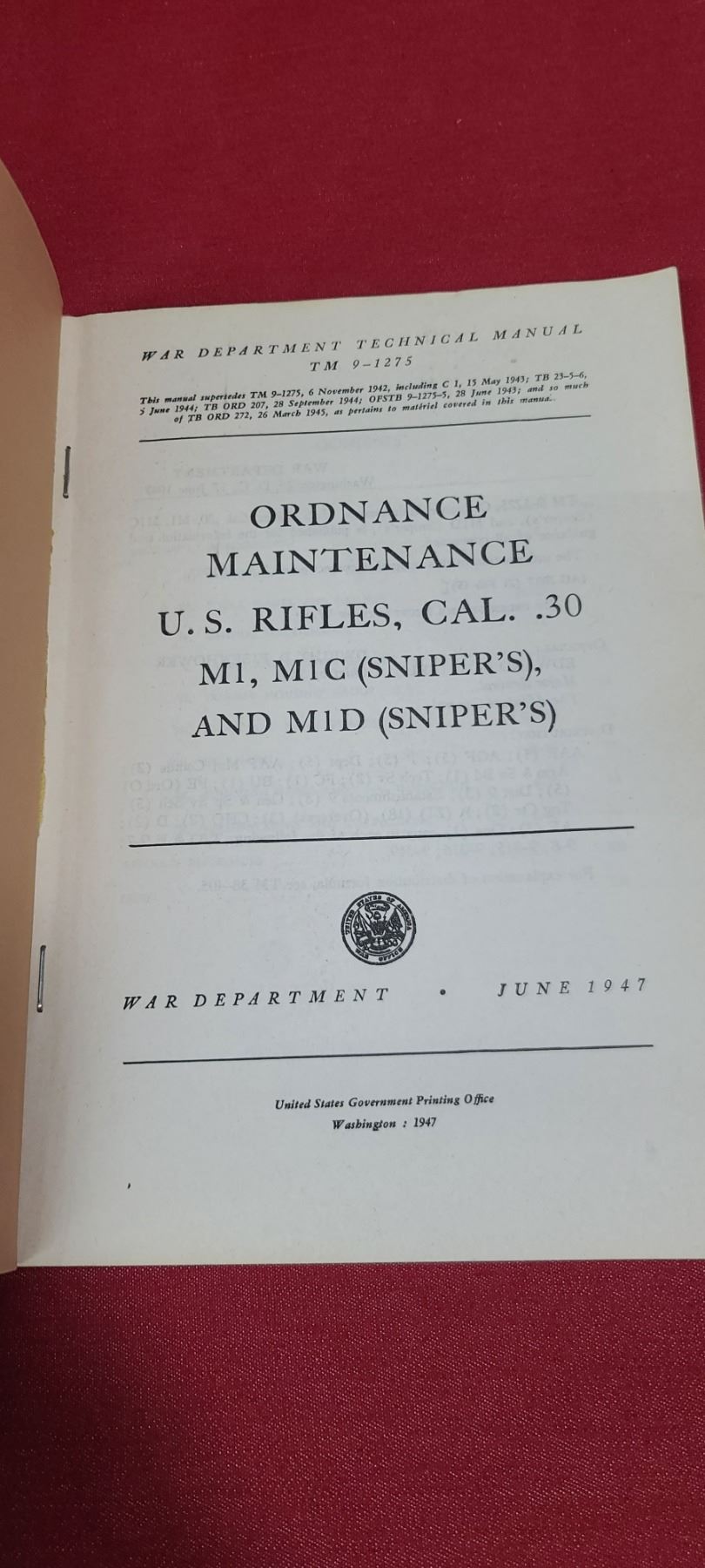 ORDANANCE MAINTENANCE U.S. RIFLES .30CAL M1, M1C, MAINTENANCE MANUAL FOR CALIBRER .30 M1,.30M1C, AND .30M1D