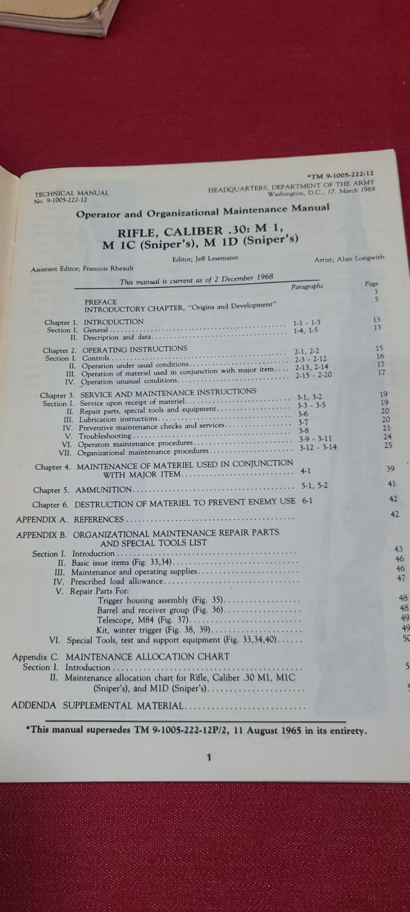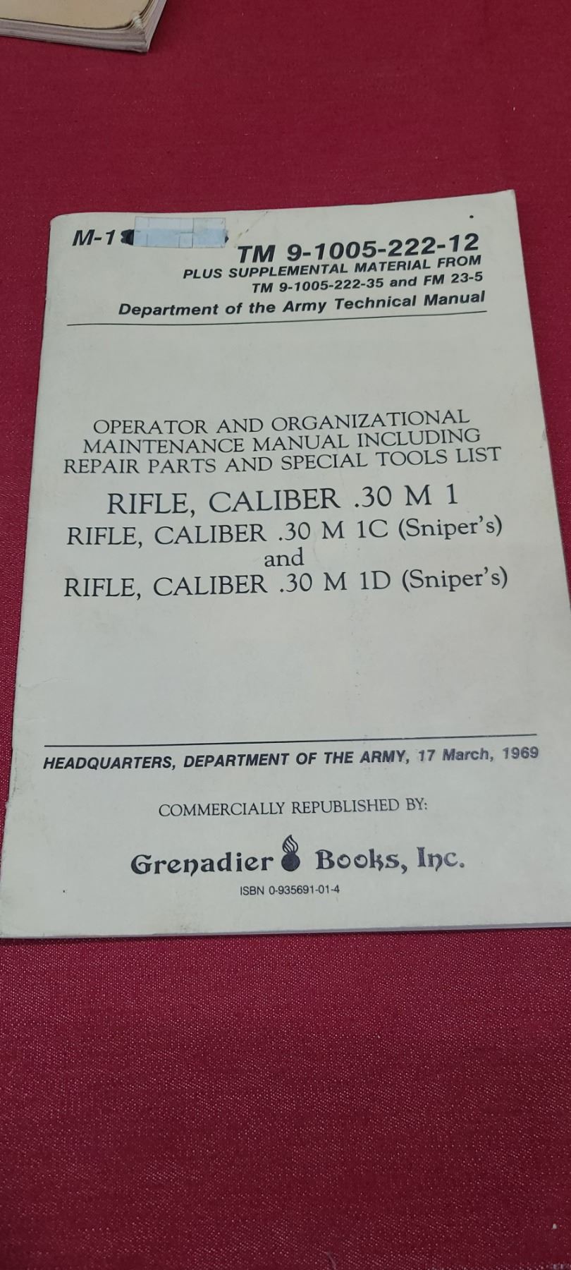 ORDANANCE MAINTENANCE U.S. RIFLES .30CAL M1, M1C, MAINTENANCE MANUAL FOR CALIBRER .30 M1,.30M1C, AND