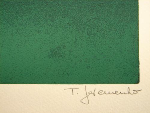 This signed limited edition serigraph on paper is by popular contemporary artist Ted Jeremenko: * Title: "Orient Point" * Serigraph on ivory Arches * Sheet size: 30 × 38½ * Image size: 21 ×34 * Signed by the artist in pencil LR * Numbered from a limited edition LL * Bright and fresh gallery condition; never mounted, matted or framed * Certificate of Authenticity issued by Midwest Estate Buyers * * Born in Yugoslavia in 1938, Ted Jeremenko's family emigrated to the US in 1950. His work brilliantly straddles the primitive and the contemporary and the artist strives to celebrate simple values. His early training in architecture helps him to pare a landscape down to its essentials, producing very pleasing and appealing results. "I paint primarily for myself," says the popular self-taught artist, "but it is very gratifying to know that my artwork touches other people." * * This wonderful "primitive" landscape print will make a welcome addition to any collection or décor!