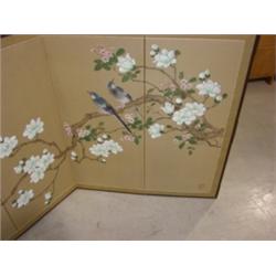 Oriental 4 section hand painted screen. Each section measures 15.5" W and 35" H.