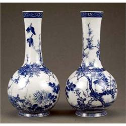 ORIENTAL CERAMICS AND WORKS OF ART - A pair of Chinese blue and white bottle vases A pair of Chinese blue and white bottle vases, well painted with prunus branches, chrysanthemums and birds in underglaze blue within flowerhead and scroll borders, 12.5in high, late 19th century