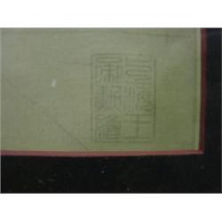 Oriental color lithograph of Oriental women. Signed in lower right. 21.5" x 17.5" framed.