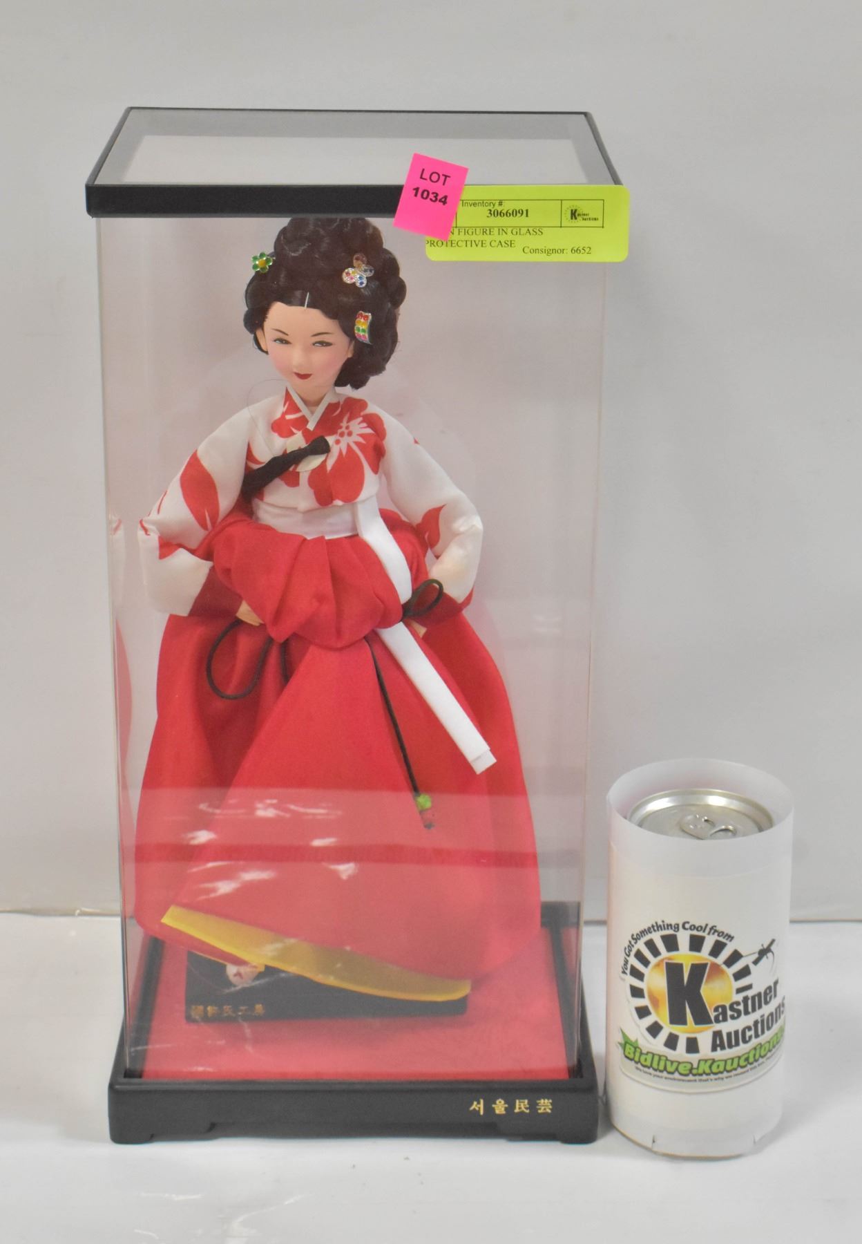 ORIENTAL FIGURE IN GLASS PROTECTIVE CASE