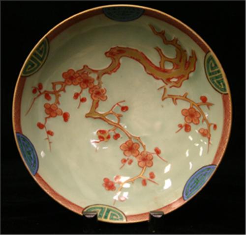 SKÅLFAT, CELADON, DEKOR AV KÖRSBÄRSKVISTAR OCH TECKEN, KINA, D24