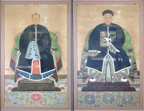 1 PAR, AKVARELLER, MAN OCH KVINNA I HÖGTIDSDRÄKTER, KINA, 17/1800-TAL, 95X58 (2) (SKADOR)