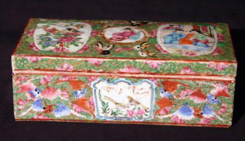 PENNSKRIN, POLYKROM DEKOR AV FIGURER, FÅGLAR OCH FJÄRILAR, KANTON, KINA, 1800-TAL, H6, B19, D10 (SMÄRRE INVÄNDIGA LAGNINGAR)