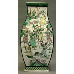 VAS, REKTANGULÄR, UTSVÄNGD FORM, DEKOR AV KRIGARE I FAMILLE VERTEFÄRGER, KANTON, KINA C. 1900, H45