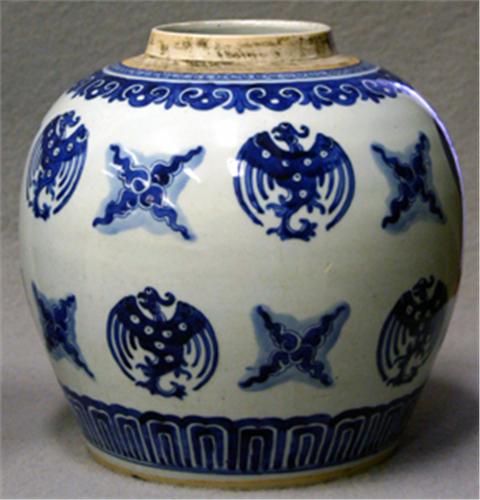 BOJAN, BLÅVIT UNDERGLASYRDEKOR AV FÅGLAR, KINA 1800-TAL, H23
