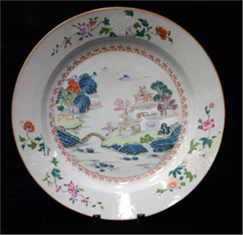 FAT, FAMILLE ROSE, DEKOR AV HUS I LANDSKAP, FAMILLE ROSE, KINA 1700-TAL, D32 (LAGNING)