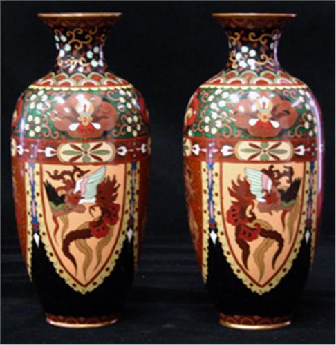 1 PAR VASER, CLOISONNÉ, BALUSTERFORMADE, DEKOR AV ORIENTALISK ORNAMENTIK, KINA 1800-TAL, H24 (2)