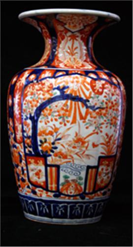 GOLVVAS, IMARI, RIK DEKOR AV BL A TRÄDGÅRDSMOTIV I RÖTT, BLÅTT OCH GRÖNT, JAPAN, 1800-TALETS ANDRA HÄLFT, H38