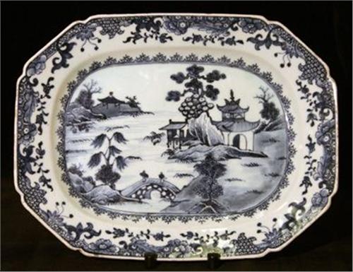 STEKFAT, REKTANGULÄRT, BLÅVIT UNDERGLASYRDEKOR AV SJÖLANDSKAP, KINA 1700-TAL, B35 (SMÄRRE KANTSLITAGE)