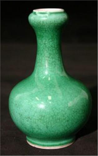 VAS, LÖKFORMAD, GRÖN GLASYR, FYRKARAKTÄRSMÄRKE, KINA 1800-TAL, H13
