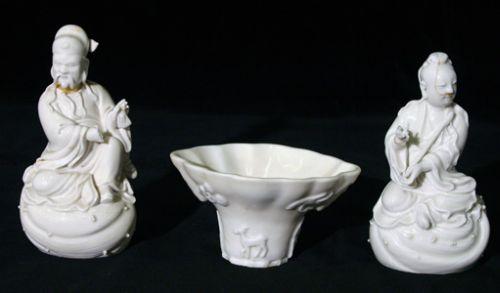 SKÅL, 2 KINESER, BLANC DE CHINE, 1800-TAL ELLER ÄLDRE, H7-15 (NAGG, LAGNINGAR) (3)