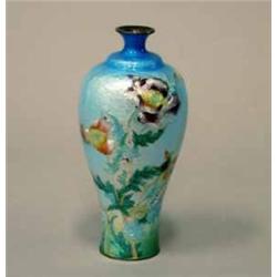 VAS, SPOLFORMAD, CLOISONNÉ, EMALJDEKOR PÅ SILVER AV ANEMONER, KINA 1800-TAL, HÖG KVALITÉ, H15 (LITEN STÖTSKADA)