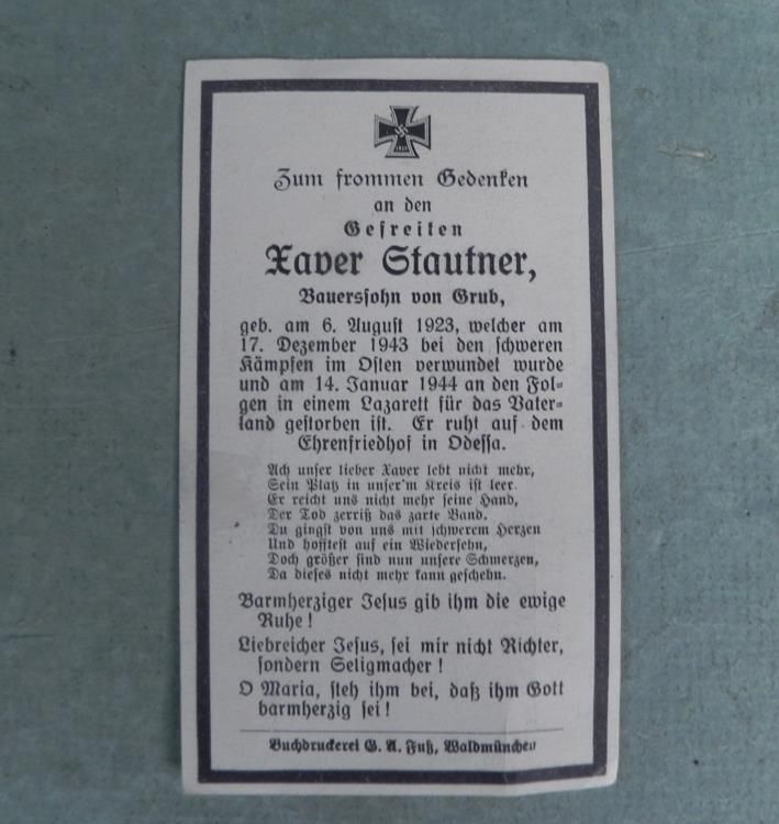 ORIG NAZI WWII FUNERAL CARD-W/PIC & IRON CROSS/HELMET-WEHRMACHT-KIA 1944 2 3/4 X 4 1/2"
