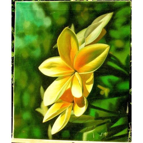 <table width="100%" border="0" cellspacing="0" cellpadding="4"><tr><td><em> YOU CAN ALMOST SMELL THE FRAGRANCES OF JASMINE, CITRUS, SPICES AND GARDENIA IN THIS PAINTING OF FRANGIPANI FLOWERS.</em></td></tr><tr> <td width="100%"> AN ORIGINAL OIL PAINTING OF PLUMERIA (FRANGIPANI) FLOWERS <P><Br>A beautiful floral oil painting of a group of yellow and white frangipani, also known as plumeria, flowers.