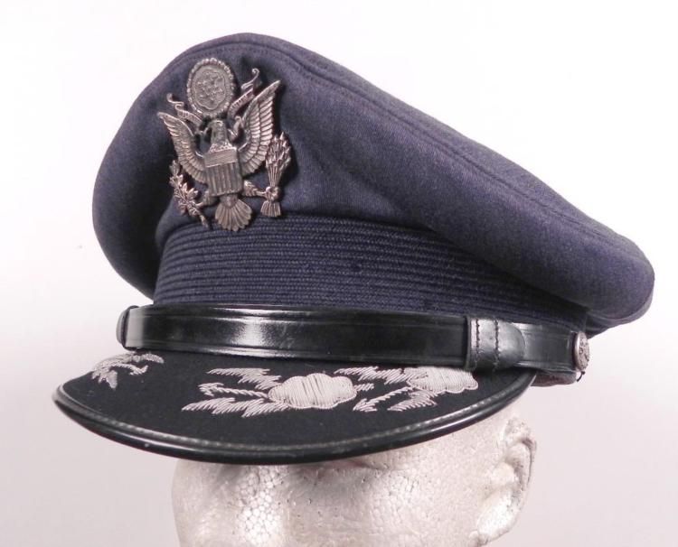 ORIGINAL POST-WAR 1940'S OFFICER'S CRUSHER VISOR CAP FROM CBI HUMP PILOT W/COPY OF HIS HISTORY * NAME UNDER SWEATBAND-GUARANTEED TO HAVE BEEN THIS CBI PILOT'S VISOR-OUTSTANDING BULLION WORK ON VISOR OF HAT--GREAT LOOKING CRUSHER VISOR *