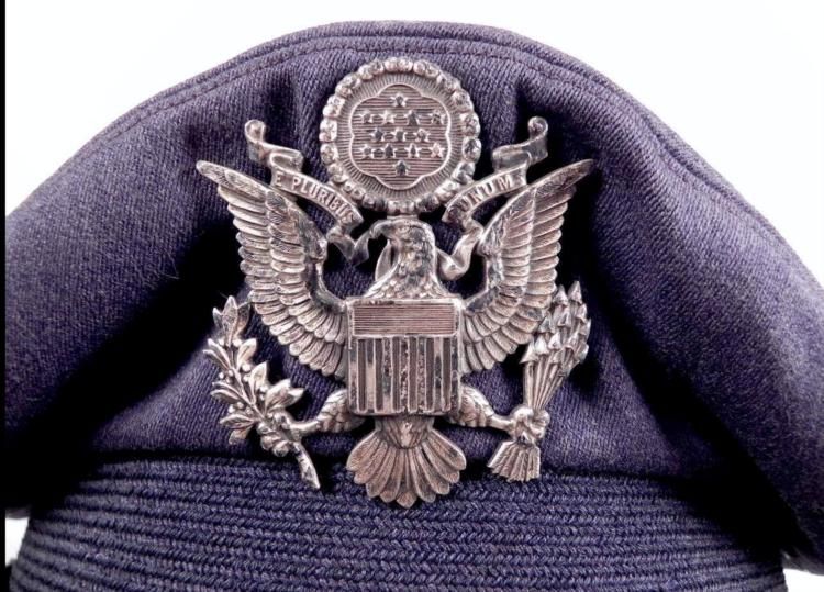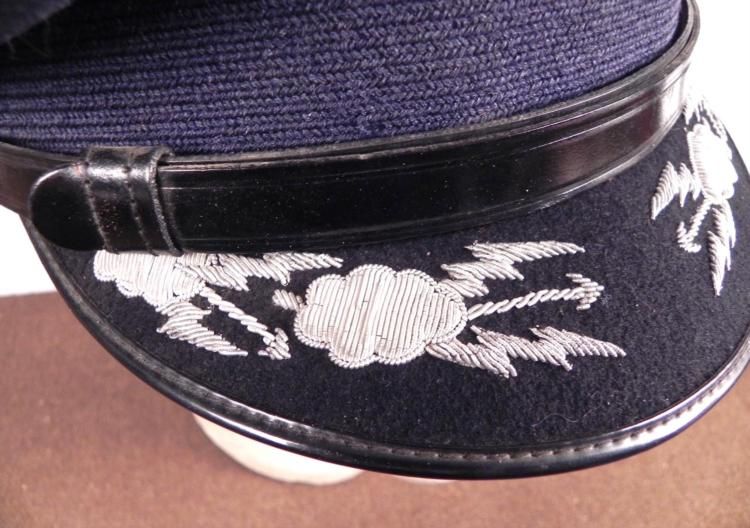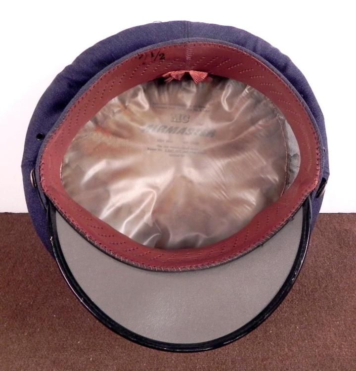 ORIGINAL POST-WAR 1940'S OFFICER'S CRUSHER VISOR CAP FROM CBI HUMP PILOT W/COPY OF HIS HISTORY * NAME UNDER SWEATBAND-GUARANTEED TO HAVE BEEN THIS CBI PILOT'S VISOR-OUTSTANDING BULLION WORK ON VISOR OF HAT--GREAT LOOKING CRUSHER VISOR *