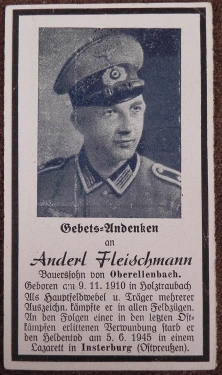 ORIG WEHRMACHT NAZI SOLDIERS FUNERAL PRAYER CARD-KILLED -KIA IN 1945 * WITH RELEGIOUS REVERSE