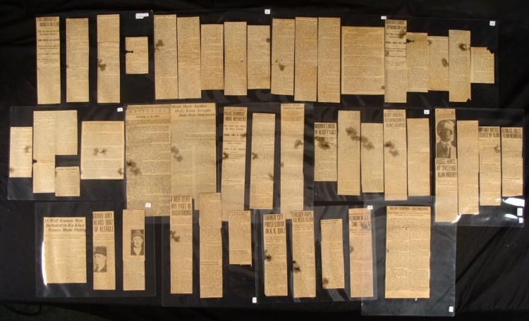 HERE IS AN ORIGINAL 1920's KLUX KLAN NEWSPAPER WRITE-UPS THAT IS LAMINATED. * THIS HISTORICAL NEWSPAPER DEPICTS THE ACCOUNTS OF KKK TACTICS IN THE 1920'S. THE NEWSPAPER COMES WITH 13 SHEETS AND MANY ARTICLES. *