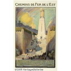 <B>Chemins de Fer de l'Est, Verdun (Strasbourg, 1930)</B></I> Travel Poster (24.5" X 39"). French Railway poster. War Memorial at Verdun. Artist Besnay. Fine+ condition on Linen.
