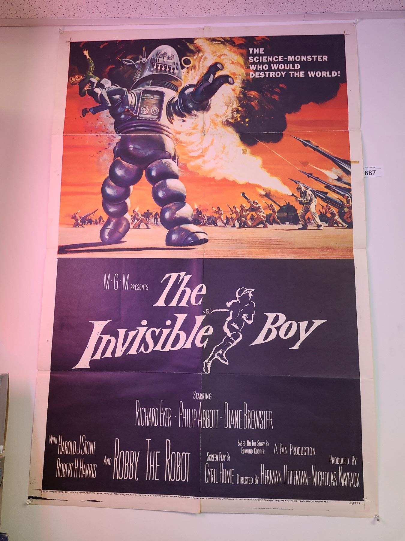 ORIGINAL 1957 "THE INVISIBLE BOY" FEATURING ROBBY THE ROBOT LARGE MOVIE POSTER
