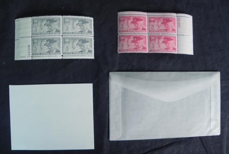 ORIGINAL 3 CENT POSTAGE STAMPS-FINAL REUNION UNITED CONFEDERATE VETS & GAR UN-USED W/BLOCK #'s--2 BLOCKS OF 4 STAMPS EACH (3 CENT STAMPS) UNITED CONFEDERATE VETERANS-FINAL REUNION AND GRAND ARMY OF THE REPUBLIC UNION VETERANS