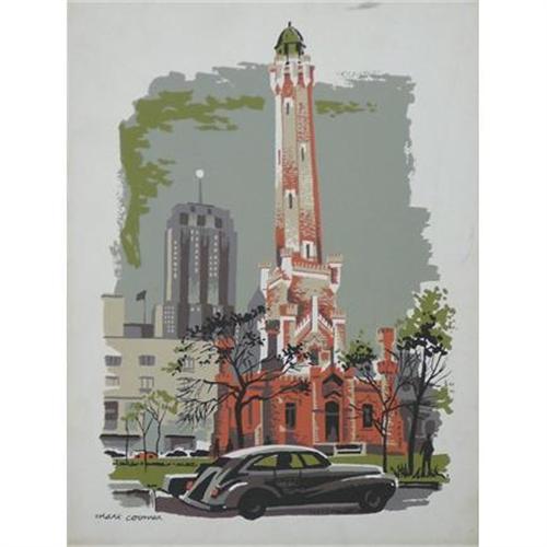 DELIGHTFUL, COLORFUL ORIGINAL PRINT BY MARK COOMER FROM THE 1950s. SERIGRAPH ON MASONITE BOARD. THESE PRINTS ARE SO '50s THAT YOU CAN ACTUALLY WASH THEM.