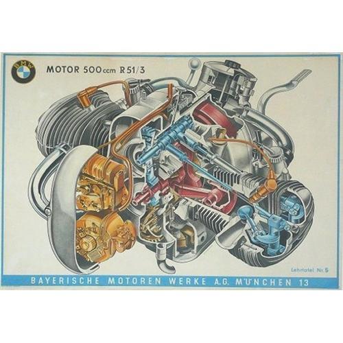 ORIGINAL VINTAGE (NOT REPRODUCTION) MID-CENTURY MODERN INDUSTRIAL POSTER WITH AN IMAGE OF A BMW ENGINE CROSS-SECTION. CONSERVATION MOUNTED. THE ENGINE FEATURED IS THE AMAZING BMW 500 CCM R51/3 MOTORCYCLE ENGINE FROM 1953. SHIPPING PRICE INCLUDES INSURANCE.