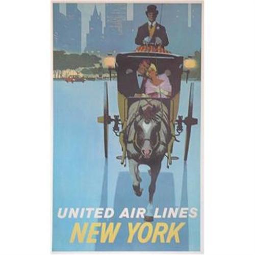 GREAT ORIGINAL TRAVEL POSTER BY STAN GALLI MADE IN THE 1960'S-1970'S PERIOD FOR UNITED AIR LINES. THIS POSTER FEATURES A ROMANTIC VISION OF NEW YORK. WHO IS THAT PARIS HILTON LOOKING LADY IN THE CARRIAGE? 40" X 25", GOOD CONDITION WITH MINOR FLAWS, CONSERVATION MOUNTED ON CANVAS. SHIPPING PRICE INCLUDES INSURANCE IN USA, BY USPS. WILL BE AS FAIR AS POSSIBLE W/ OVERSEAS BUYER SHIPPING, INCLUDING INSURANCE. UPS MOST LIKELY, FOR VERIFICATION AND TRACKING.