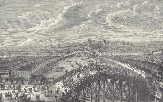 ORIGINAL Antique PRINT scenE-VIEW FROM THE BRIDGE OF NIPHON, TOKIO