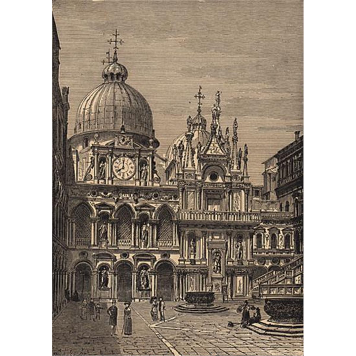 ORIGINAL Antique PRINT scene-DUCAL PALACE, VENICE (NOT A REPRODUCTION) that was createdand produced, using a wood cut (Scene carved out of a wood block). One of several that were found in an 1858 Southern Antebellum mansion, all being offered for sale. Condition is excellent PLUS! Measures 10in x 7.5in.