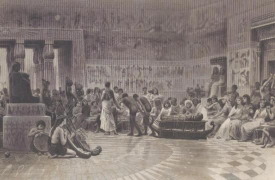 ORIGINAL Antique PRINT scene- EGYPTIAN FEAST (NOT A REPRODUCTION) that was createdand produced, using a wood cut (Scene carved out of a wood block). One of several that were found in an 1858 Southern Antebellum mansion, all being offered for sale. Condition is excellent PLUS! Measures 6.5in x 9.75in.