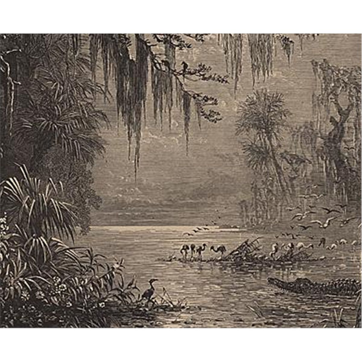 ORIGINAL Antique PRINT scene-EVERGLADES OF FLORIDA-LAND OF THE SEMINOLES (NOT A REPRODUCTION) that was createdand produced, using a wood cut (Scene carved out of a wood block). One of several that were found in an 1858 Southern Antebellum mansion, all being offered for sale. Condition is excellent PLUS! Measures 7.5in x 10in.