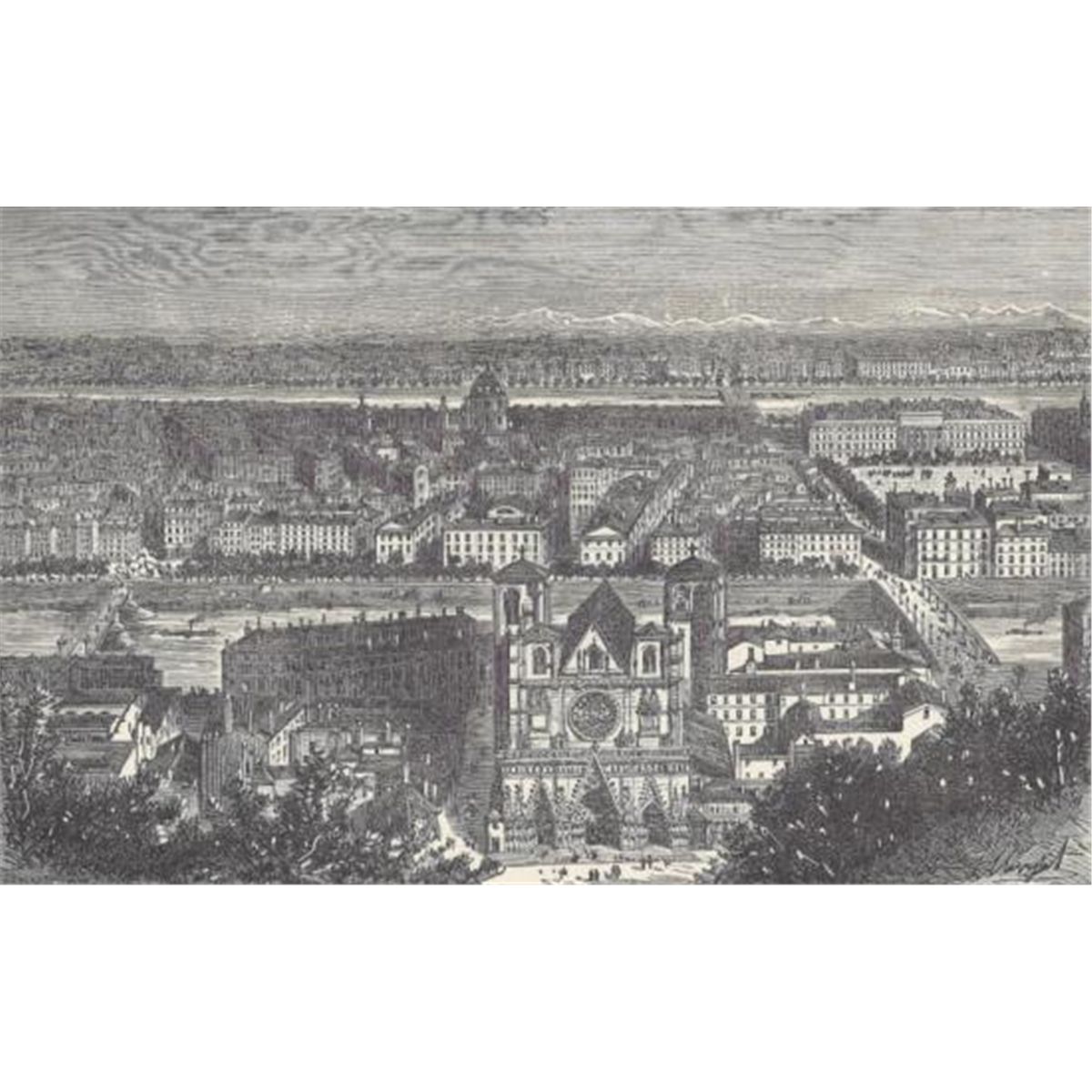 ORIGINAL Antique PRINT scene-GENERAL VIEW OF LYONS (NOT A REPRODUCTION) that was createdand produced, using a wood cut (Scene carved out of a wood block). One of several that were found in an 1858 Southern Antebellum mansion, all being offered for sale. Condition is excellent PLUS! Measures 7.5in x 10in.