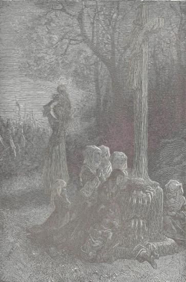 ORIGINAL Antique PRINT scene- PRAYING FOR THE SUCCESS OF THE CRUSADERS (NOT A REPRODUCTION) that was createdand produced, using a wood cut (Scene carved out of a wood block). One of several that were found in an 1858 Southern Antebellum mansion, all being offered for sale. Condition is excellent PLUS! Measures 7.5in x 10in.